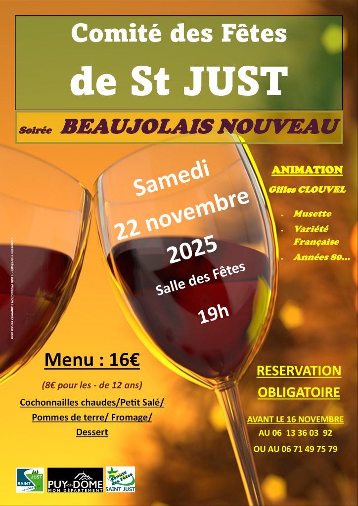 • Samedi 22 novembre 2025 Soirée BEAUJOLAIS NOUVEAU